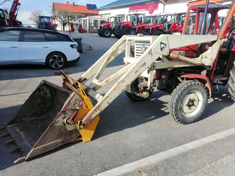 Frontlader Steyr 540 545 548 MIT MISTGABEL NEUWERTIG U SCHAUFEL 1M Frontlader mit Konsolen für Steyr 540 545 548 3 Zylinder Traktorzubehör Frontlader