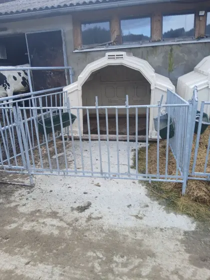 Gruppeniglu für 5 Kälber zu verkaufen. Inkl. Heuraufe, Tränke und Kraftfuttertrog. Das Iglu ist in der Rückwand mit einer Lüftungsklappe ausgestattet und ausdauernd