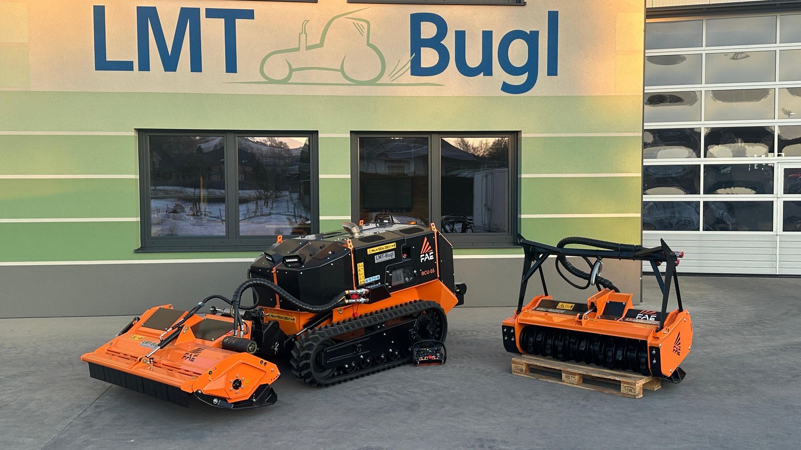 FAE RCU55 - Ferngesteuertes Raupenfahrzeug * Dieselmotor REHLKO (KOHLER) KDI 1903 Turbo After-Cooler * Nachbehandlungssystem DOC/DPF * Hydrostatischer Antrieb Traktion * Hydrostatischer Antrieb Geräte * Zusatz-Hydraulik für Geräte * Lastkontrollsystem (Load Control) * System verstellbare Spurweite mit unabhängiger hydraulischer Steuerung * Automatisches Gummiketten-Spannsystem * Hydraulisch gesteuertes proportionales Umkehrlüftersystem * Ergonomische Bedienelemente * Fernsteuerung mit doppelter Batterie und Batterieladegerät an Bord der Maschine * 7-Zoll-LCD-Farbdisplay an Bord der Maschine * LED-Arbeitsscheinwerfer * Floating System * High Profile Gummiketten und Walzensystem * 4,3-Zoll-LCD-Farbdisplay an der Fernsteuerung * Biologisch abbaubares Hydrauliköl * Hintere Seilwinde mit 2tonnen Zugkraft * Forstmulcher BL1/RCU55-125 RCU-Schnellwechsel mit Anbauplatte mit Kippfunktion für Geländeausgleich * Mulcher PML/RCU55-150 Anbauplatte mit selbstregulierendem Niveauausgleich
