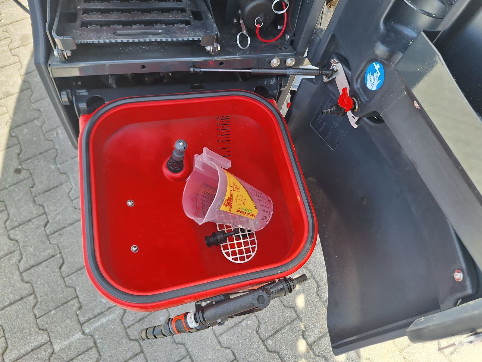 - mit im Rahmen integrierter 30 Liter Einspülschleuse mit Ringleitung und Kanister-Spüldüse