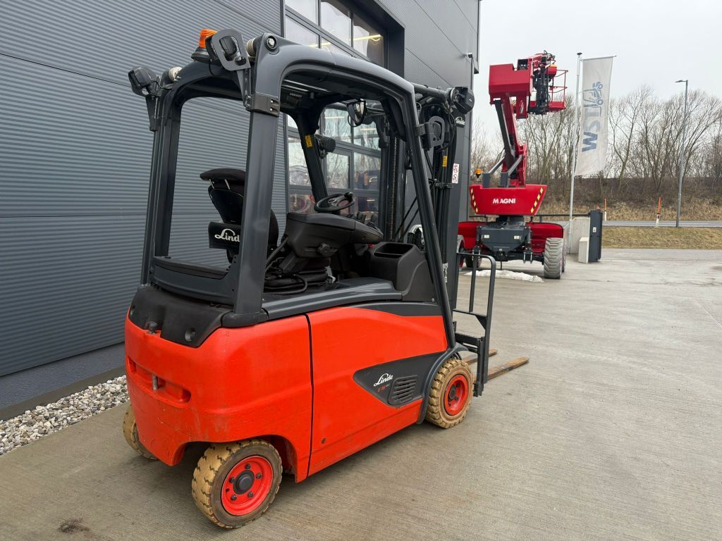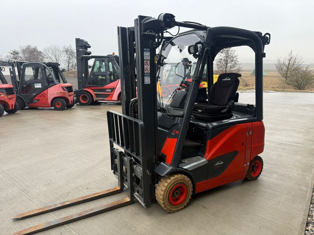 Bauart: Frontstapler / Elektro 4 Rad-Stapler, Tragkraft: 1600kg, Hubhöhe: 4620mm, Bauhöhe: 2130mm, Gabellänge: 120mm, Batterie: Linde Bj. 2019 48V , Bereifung vorne: Superelastik Einfach , Bereifung hinten: Superelastik Einfach , Anbaugeräte: Seitenschieber, Sonderausstattung: 3. Ventil, Arbeitsscheinwerfer hinten, Arbeitsscheinwerfer vorn, Halbkabine, Sitz,