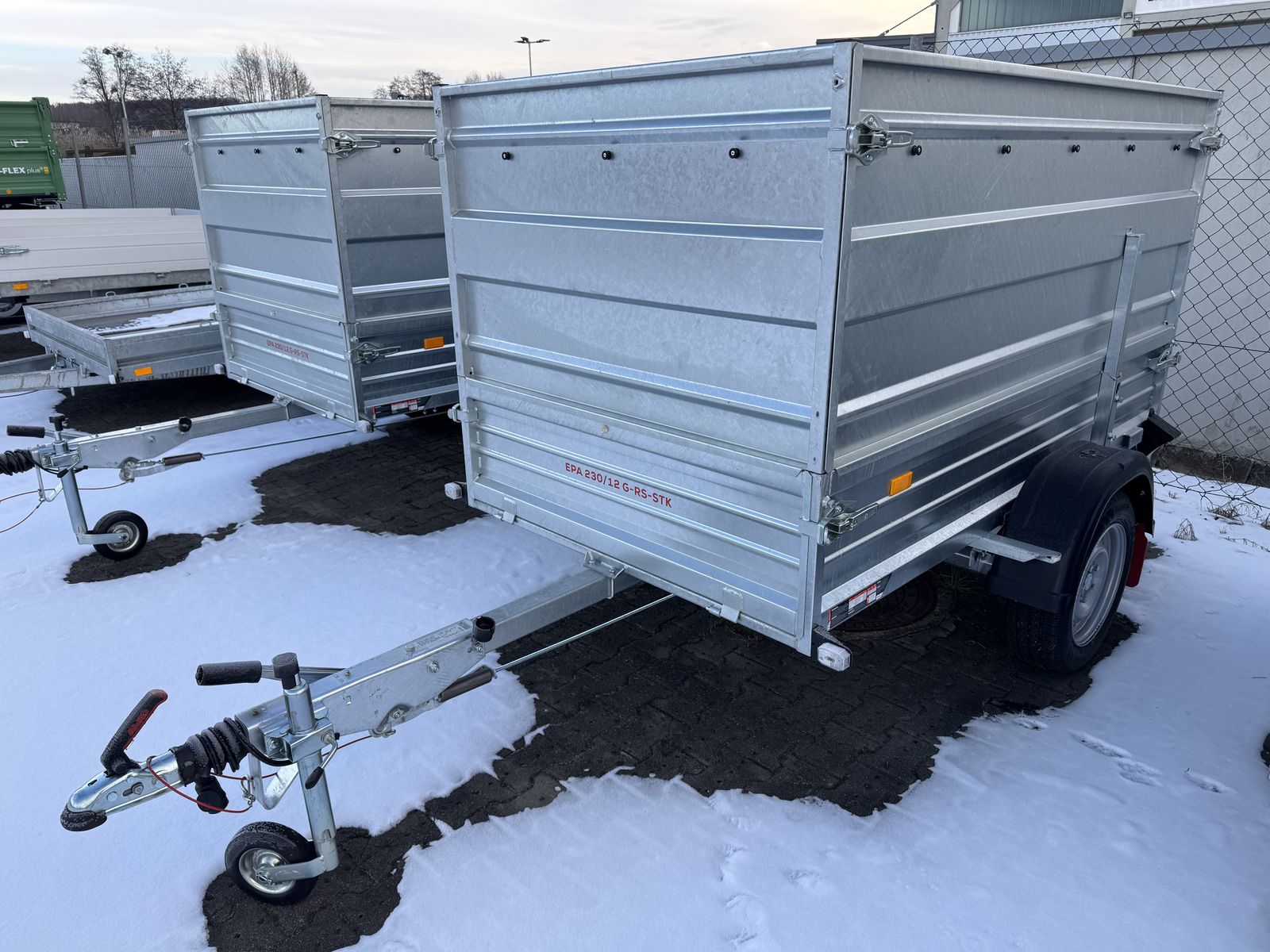 HZG 1300kg Aufsatzwände 800mm Flachplane VT Rungenset Kastengröße 2.230 x 1.250 x 400 mm Tieflader mit massiven Bordwänden aus Walzstahl - Hohlkammerprofil, verstärkte Ausführung mit durchgehendem Rohrscharnier bei Rückwand Ladekasten verschweißt und tauchbadverzinkt serienmäßig auch vordere Bordwand klappbar (STK) durchgehende Zugdeichsel mit verzinktem Abschlussträger verschraubt Anbindemöglichkeit zur Ladungssicherung Stützrad in Serienausstattung enthalten