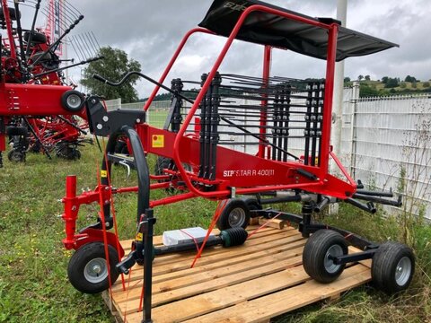 Heckanbau ________ SIP Star 400/11 Baujahr: 2025 Arbeitsbreite: 4 Meter 11 Zinkenarme Kreiseldurchmesser: 3,15m 540 Zapfwelle ha/h: 5 Mechanische Einstellung Tandemachse Schwadtuch Stützrad Kreiselbereifung: 16x6,50 - 8 Gewicht: 550kg Transportmaße: L: 3,70m B: 1,99m H: 1,50m