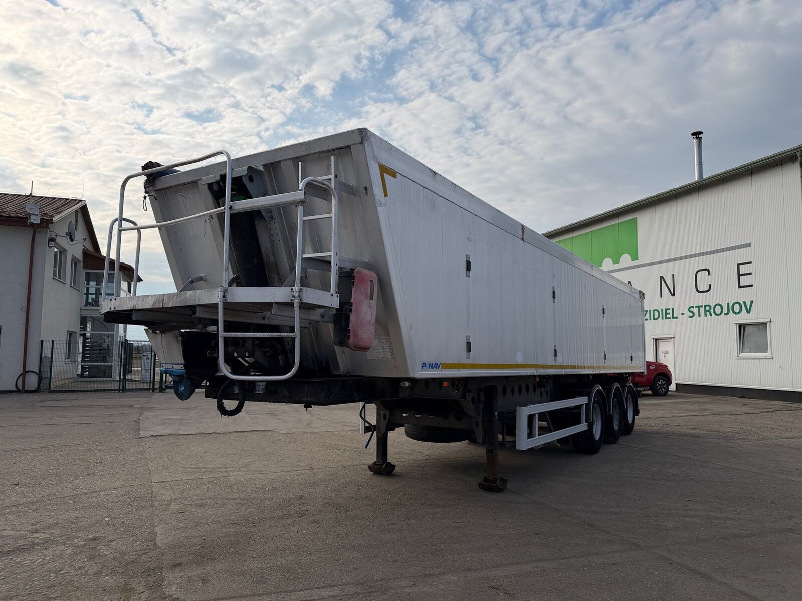 PANAV NS142H jednostranný vyklápač 45 m3 r.v. 08/2014, trojkombinácia, kotúčové brzdy, zdvíhacia náprava, ALU nadstavba, pozinkované šasi, rozmery: D- 10,7m, V- 1,75m, Š- 2,45m, váha: 6290 kg, celková hmotnosť: 42000 kg, nápravy BWP, stav pneu: 10%