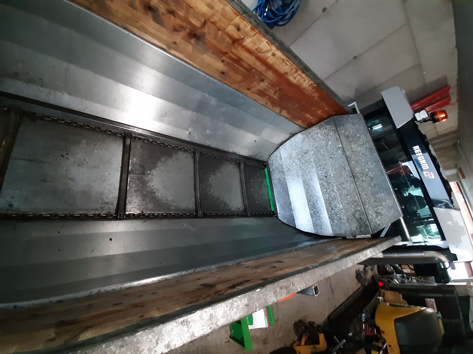 + verzinkte Ausführung + Aufsatzwände + C-Schiene für optimale Anpassung an das Trägerfahrzeug + Anbauteile aktuell für Reform Muli + 210 Grad Schwenkbar + Innenbreite 1300 mm + Höhe Wanne 1220 mm + Innenlänge ca. 3000mm + hydraulischer Kratzbodenantrieb - DW notwendig + hydraulische Schwenkung - DW notwendig + 4 Stützen + Gelenkwelle