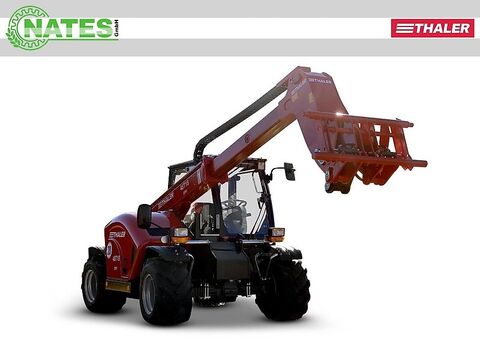 Der Thaler 48T18 DPF ist ein kompakter Teleskoplader mit einem 48 PS starken Yanmar-Motor. Mit einer maximalen Hubhöhe von 4,8 m und einer maximalen Hubkraft von 2.500 kg eignet er sich ideal für vielseitige Einsätze in Landwirtschaft und Kommunaltechnik. TECHNISCHE SPEZIFIKATIONEN Motor: 4-Zylinder Yanmar Dieselmotor, wassergekühlt Leistung: 35,4 kW / 48 PS Hubraum: 2190 ccm – 3000 U/min Fahrantrieb: Hydrostat mit Automotiver Steuerung Arbeitshydraulik: ca. 60 l/min, 180 bar Hydrauliktank: 50 l Geschwindigkeit: ca. 20 km/h, 2-stufig mit Drehmomenterfassung Batterie: 12V – 75 Ah Dieseltank: 50 l Feststellbremse: Trommelbremse auf Kardanwelle auf alle 4 Räder wirkend Vollkabine mit Heizung & Lüftung vorhanden Zusätzliche Ausstattung: Lenkartenventil (Vorderachs-Allrad-Hundeganglenkung) Breitreifen: 31x15,5x15 BKT SKD Euroaufnahme mit hydraulischer Verriegelung Straßentaugliche Beleuchtung STVZO Komfortsitz luftgefedert Die Preisangabe ist netto, zzgl. der gesetzlichen Mehrwertsteuer und inklusive der Frachtkosten bis Langenbernsdorf. Keine Haftung für Druckfehler oder Irrtümer. Die Abbildungen können in Form und Farbe vom Original abweichen. Zwischenverkauf vorbehalten. Besichtigungen möglich – unsere aktuellen Öffnungszeiten finden Sie auf unserer Homepage.