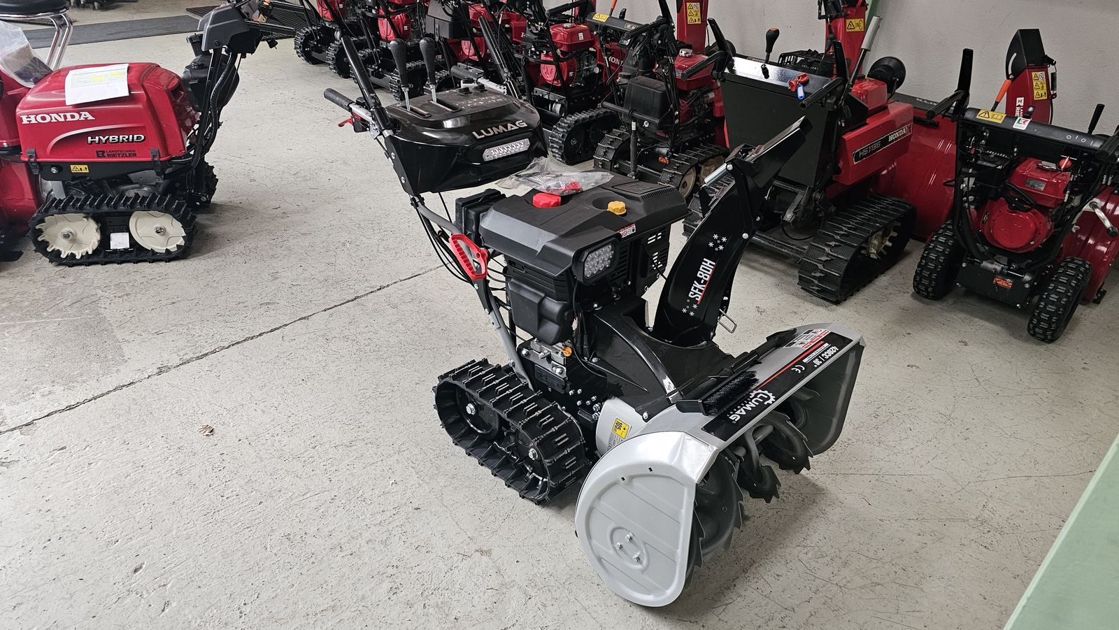 neue Lumag-Schneefräse mit 9kW bei3.600U/min, Raupenlaufwerk, Leistung, 420cm3, Gewicht: 135kg, Räumbreite: 764 mm, Einzugshöhe: 510 mm, Frässchnecke: 315 mm, Ausw