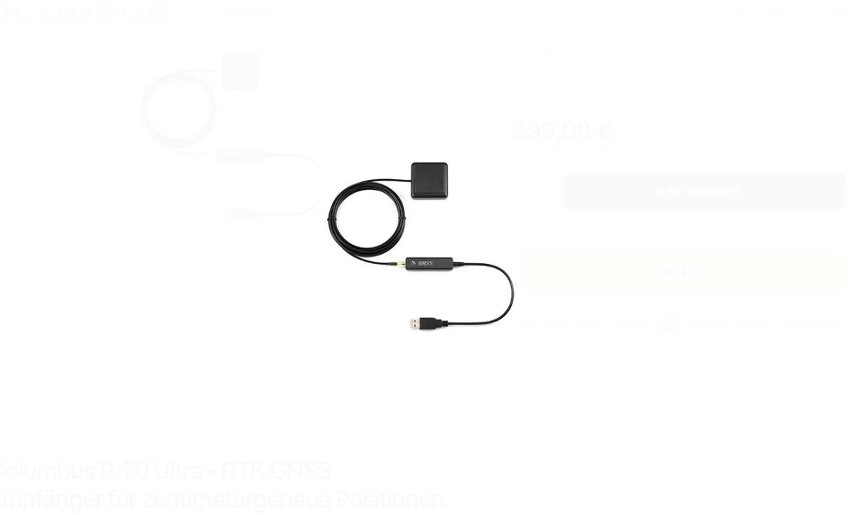 Columbus P-70 Ultra RTK GNSS Empfänger für Zentimeter-Präzision, echter Zweifrequenz-Empfang L1 und L5 für stabilste Messungen, extrem schnell mit 10 Hz im RTK und 20 Hz im SBAS Modus, Anschluss über USB-A oder kabellos per Bluetooth an das Tablet, neuwertiger Top-Zustand, voll funktionsfähig ohne Originalverpackung. Ideal für landwirtschaftliche Spurführungssysteme oder Navigation auf See.