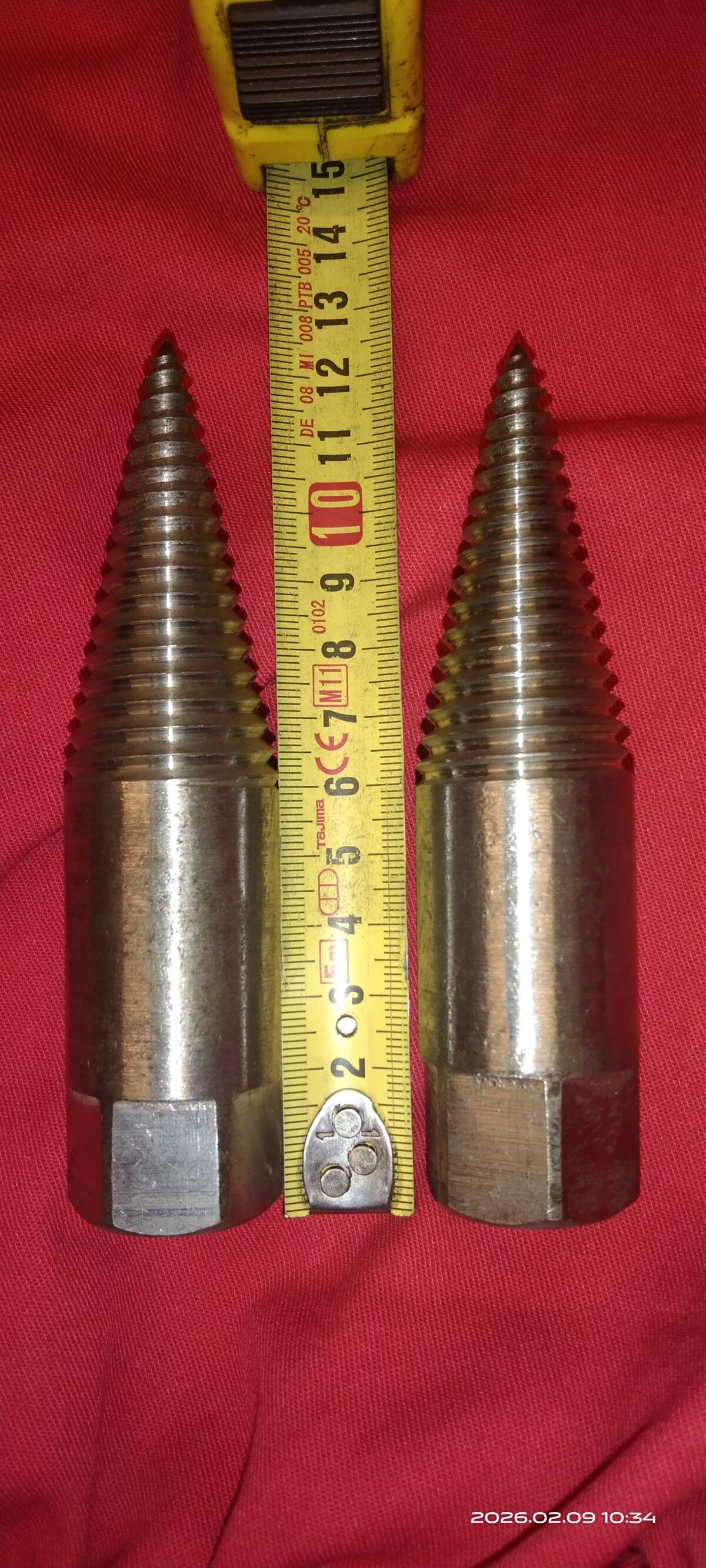 Ein Stk. Fällkeil oder Spaltkegel aus Stahl, 120 mm lang, mit Schlüsselweite 27 mm. Die Versandkosten sind € 5,-.