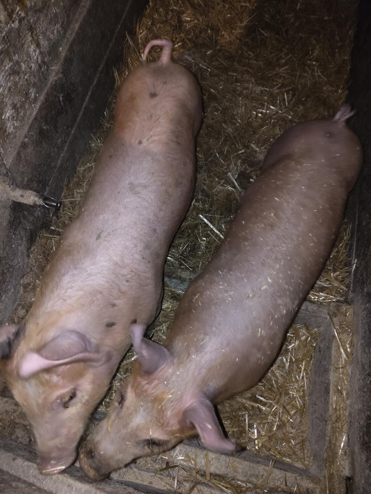 Zwei unserer Ferkel der Rassen Duroc x Pietrain suchen ein neues Zuhause. 1x männlich (kastriert), 1x weiblich, ca. 30 Kilo, Vater: reinrassiger Pietrain-Eber, Mutter: reinrassige Duroc-Sau (beide Elterntiere vor Ort). Besichtigung nach Absprache in 9.345 möglich.