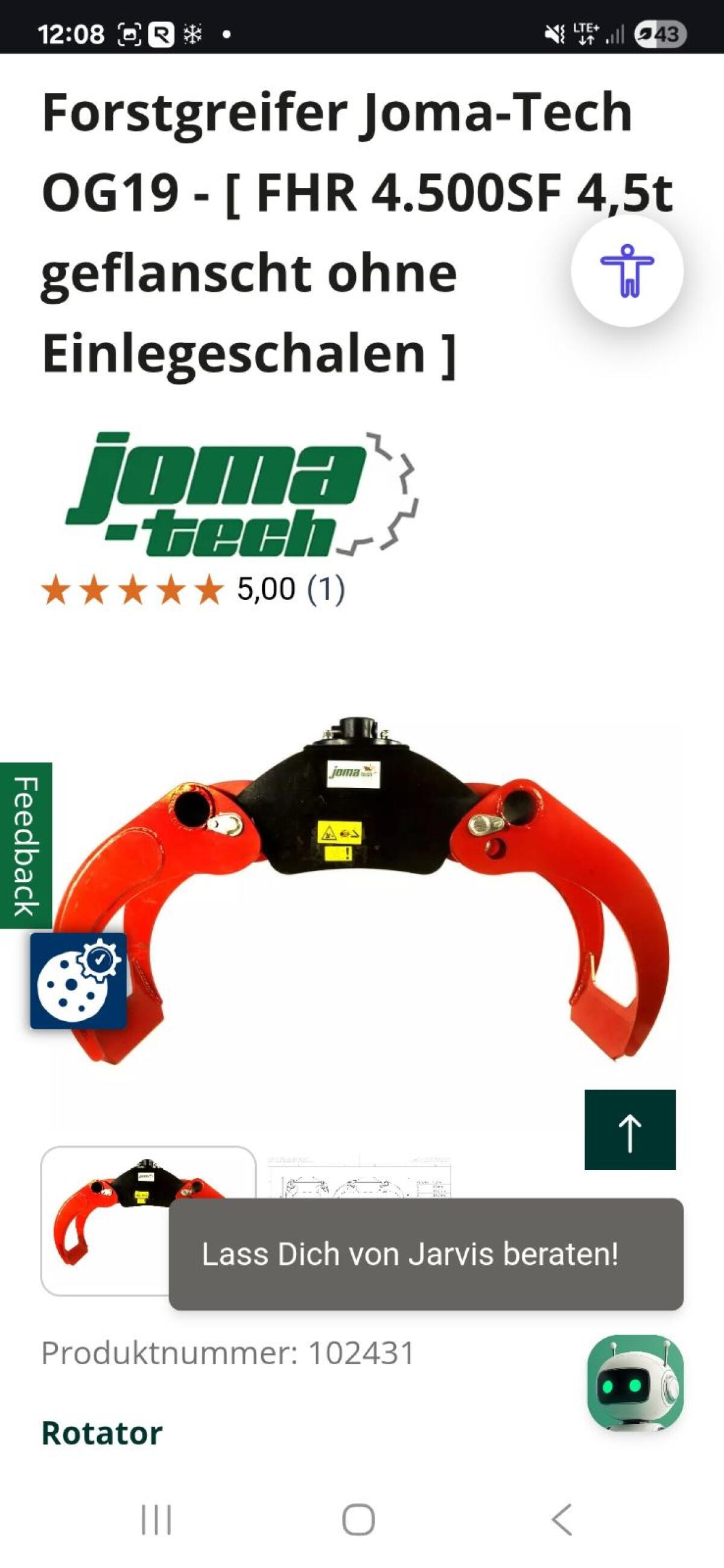 Doppelt bestellt, Holzzange mit Rotator, Öffnungsweite ca. 120 cm.