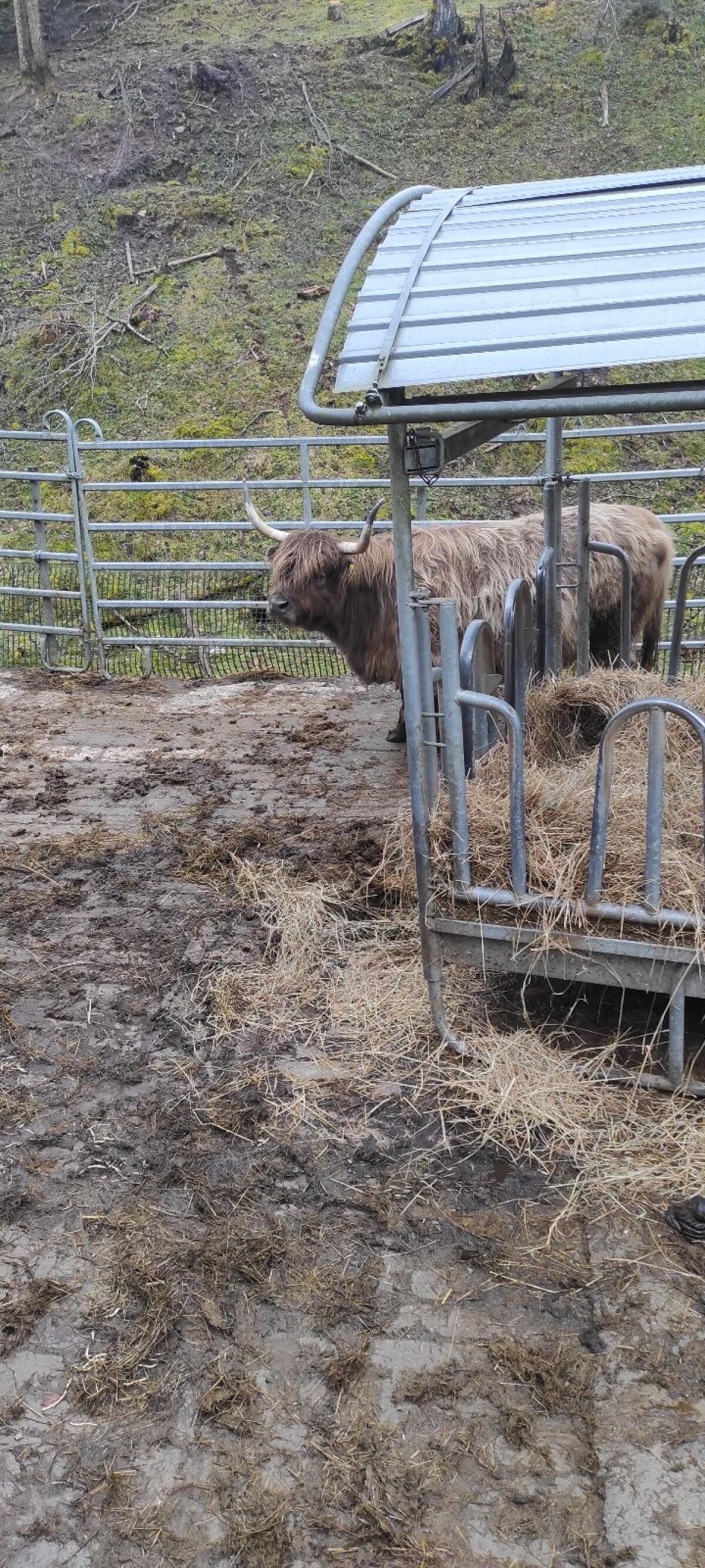 Gut gebaute Hochlandrind Kuh in der Farbe dun. Handzahm, Elektrozaun und Fressgitter gewohnt. Ab sofort abzugeben. Besichtigung erwünscht.