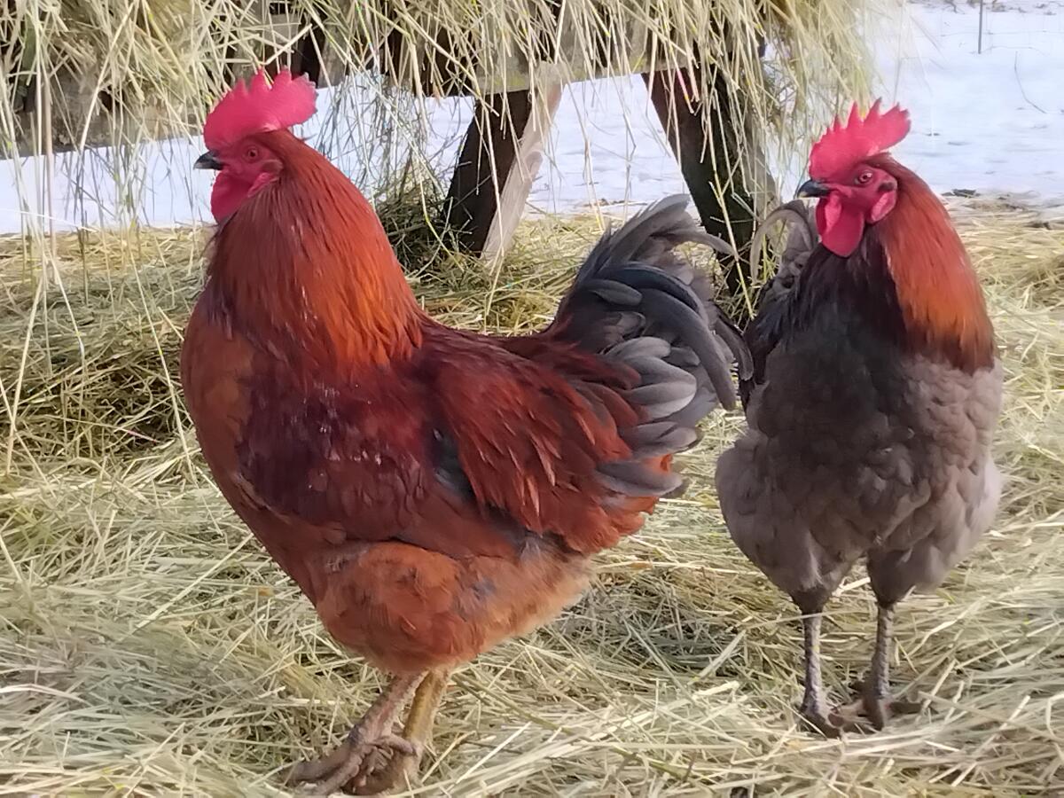 Hähne selber aufgezogen, sehr zutraulich.