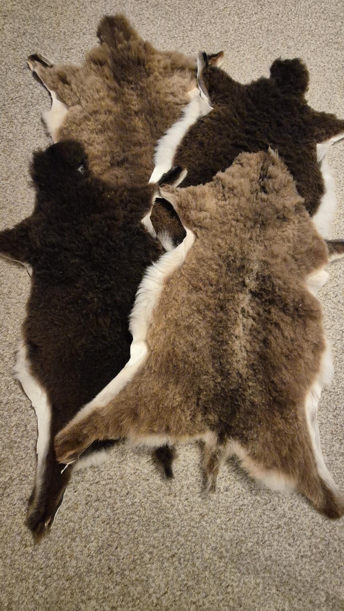 Lammfell von Soayschafen. Gerbung erfolgte im Wesentlichen mit Alaun und einem synthetischen, pflanzlichen Gerbstoff.