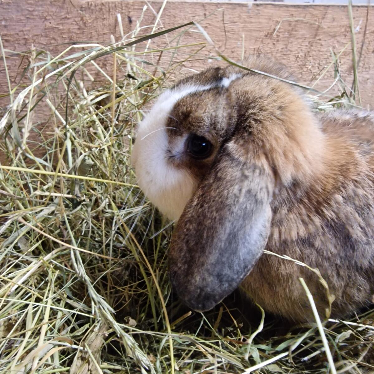 Vergebe jungen Minilop-Rammler mit blauen Augen. Er wird im Frühjahr 1 Jahr alt. Er ist sehr zahm.