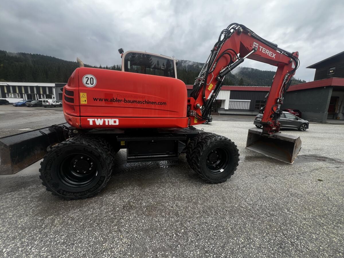 Verkaufe gebrauchten Mobilbagger Terex TW110, Betriebsgewicht 11.000 kg, Powertilt, hydraulischen Schnellwechsler, MS08, 2x Planierlöffel, 1x Tieflöffel, Rückfahrkamera, ohne Garantie und Gewährleistung.