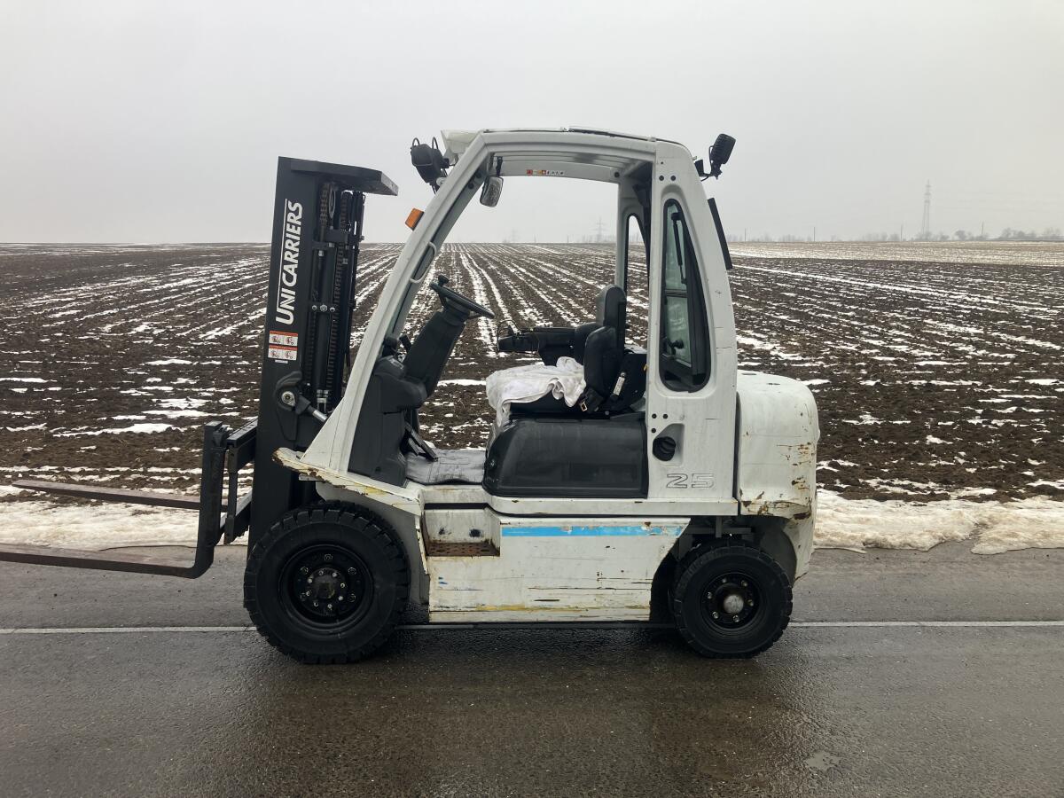 Nissan Dieselstapler, 2,5 t, Triplexmast, Seitenschub, Hubhöhe 4,3 m. Preis netto.