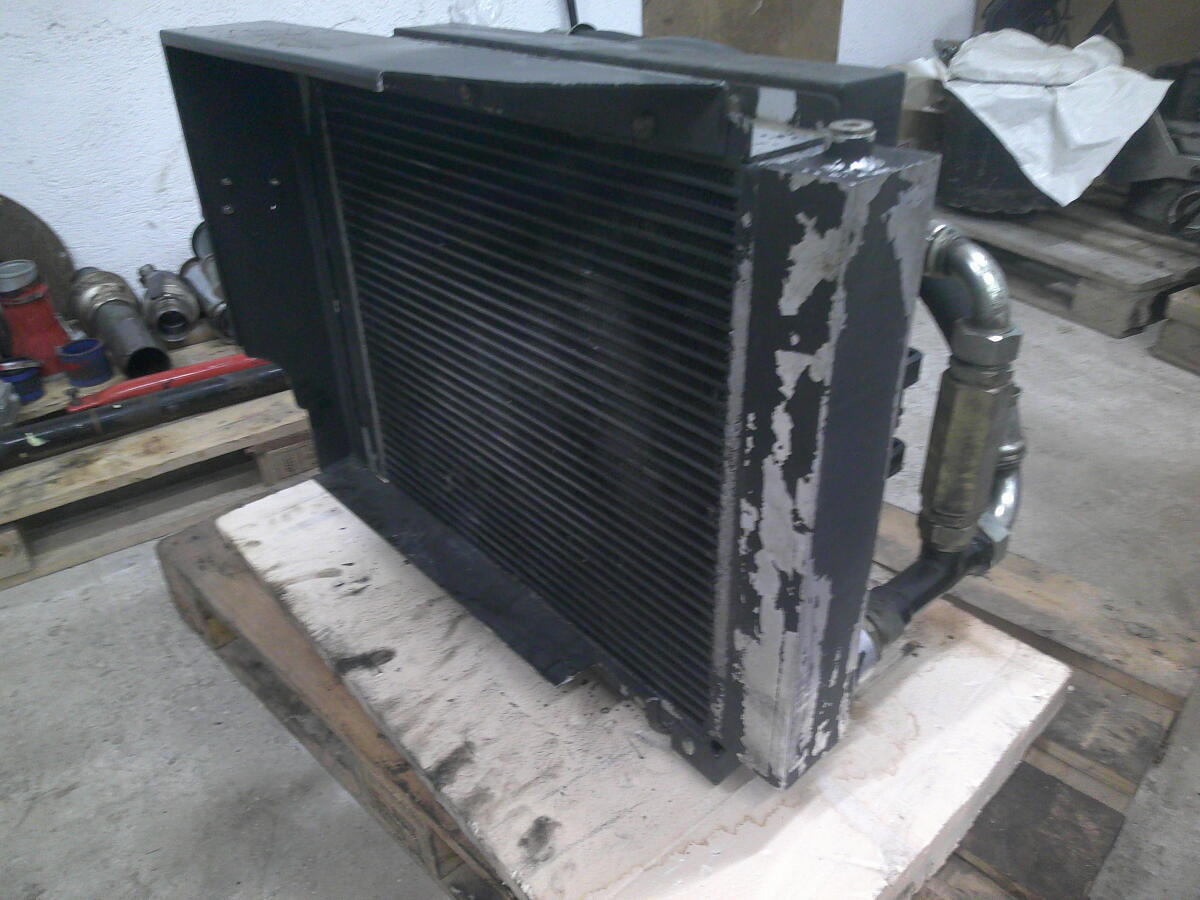 Ölkühler mit den Kühlermaßen von Breite 75 cm und Höhe 60 cm. Der Lüfter wird über einen Ölmotor angetrieben.