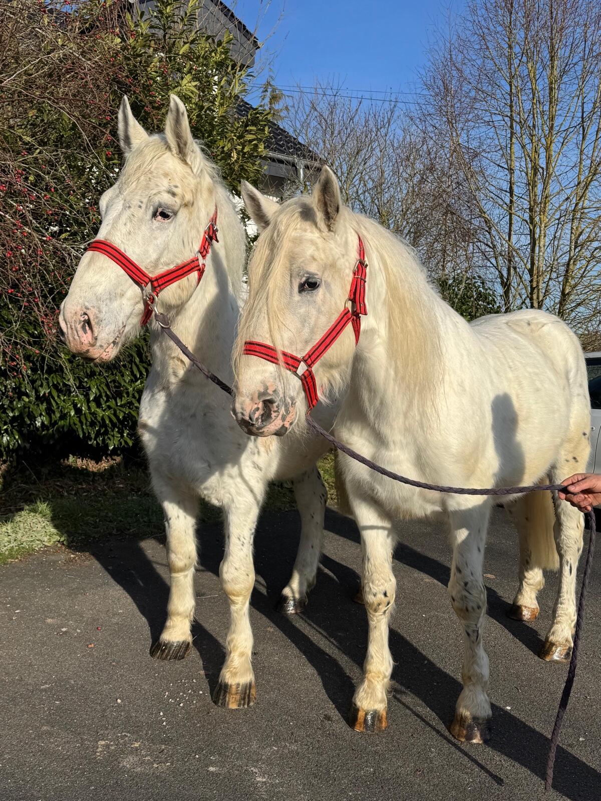 Zum Verkauf steht ein hübsches Gespann, bestehend aus zwei 6-jährigen Wallachen. Beide Wallache sind brav im Umgang. Sie werden freizeitmäßig geritten und sind als Gespann gefahren. Kaltblut, Mix Geschlecht Wallach Alter 6 Jahre Stockmaß 160 cm Farbe Schimmel Hauptdisziplin Fahren Weitere Disziplinen Freizeit