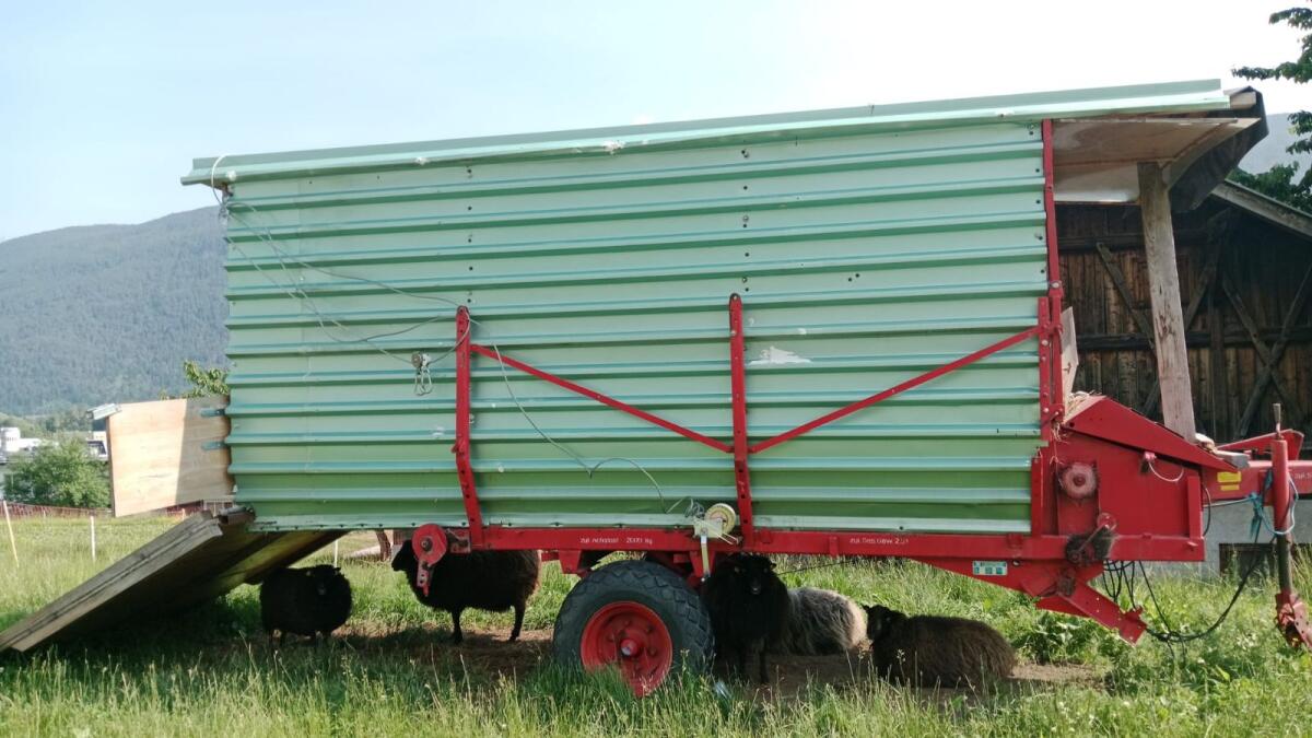 Selbst umgebauten Anhänger, dient als Unterstand für Schafe, Ziegen, kann gerne besichtigt werden.