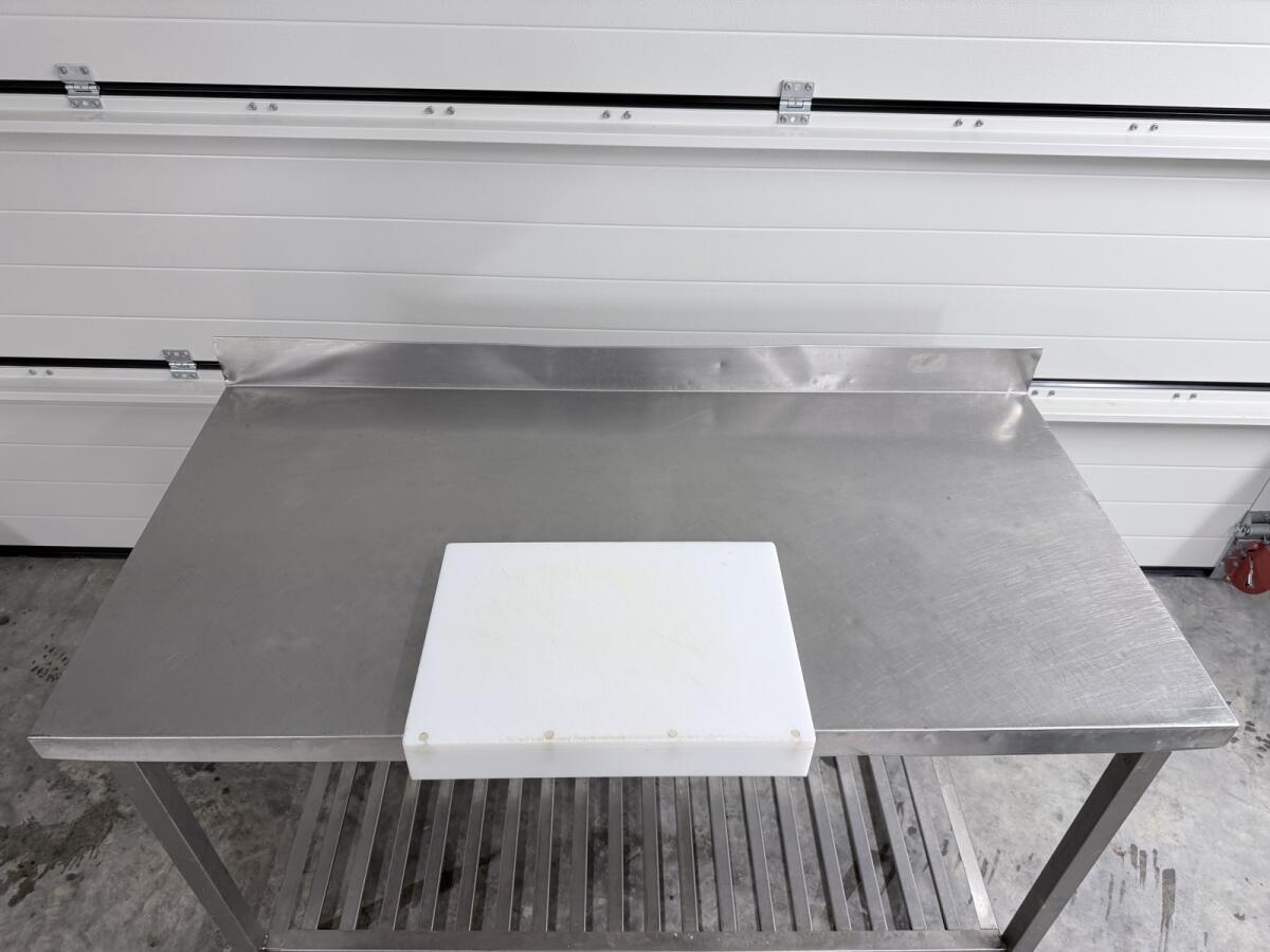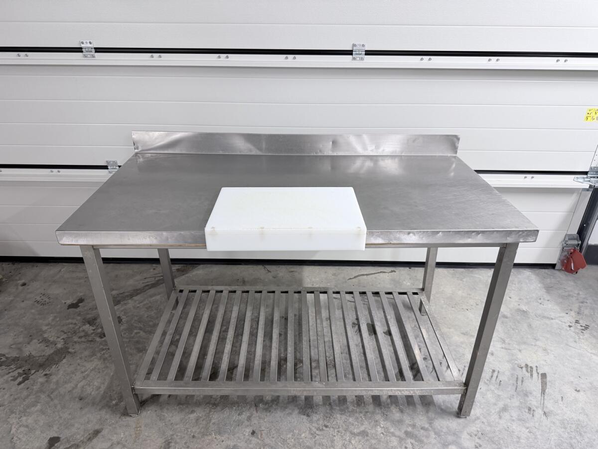 Verkaufe Niro Zerlege, Verarbeitungstisch, 150x75x92 cm, mit Schneidbrettauflage, Ablagefach, verstellbaren Füßen. Tisch hat leichte Gebrauchsspuren (Dellen, Kratzer).