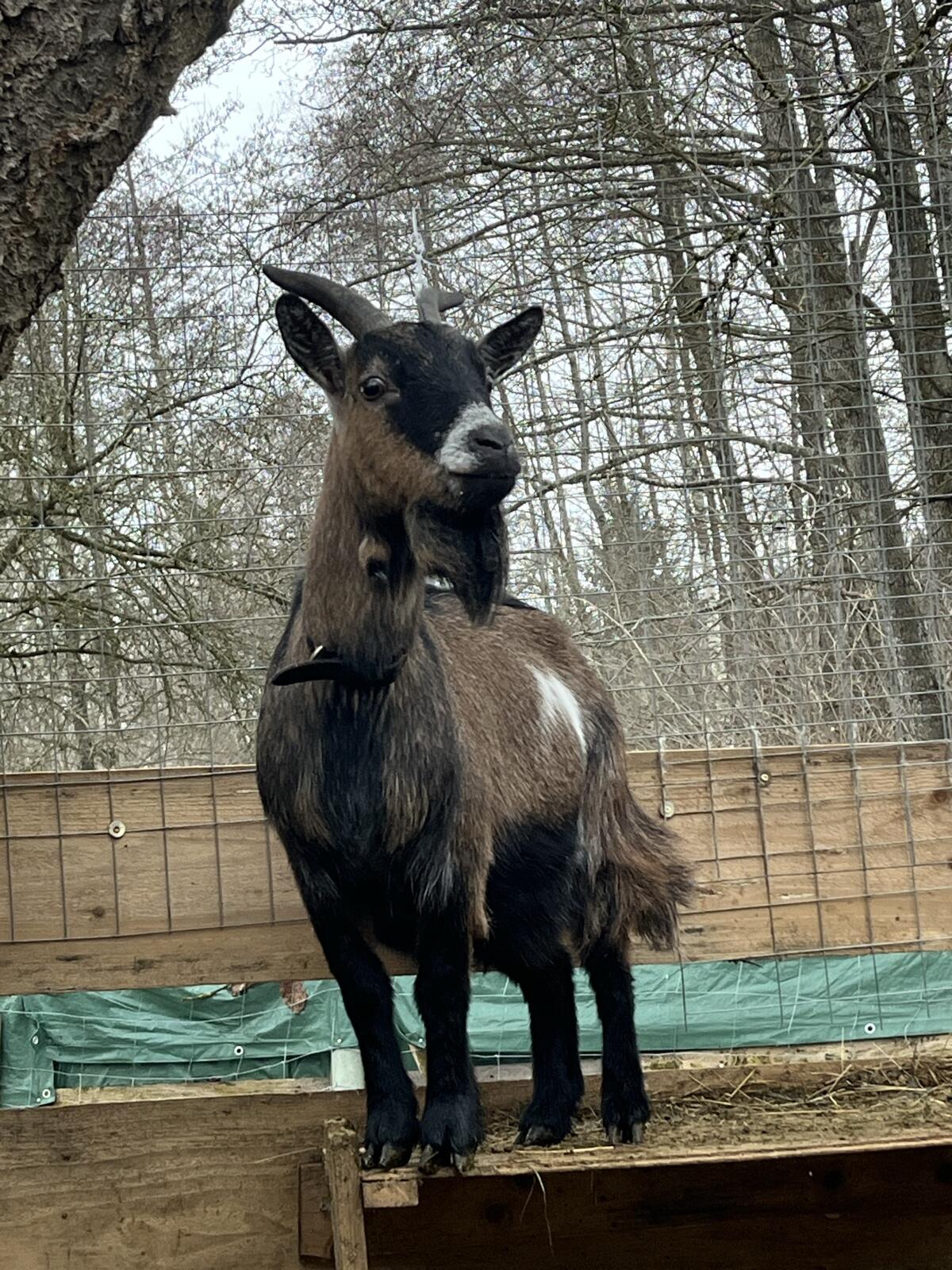 Zum Verkauf steht eine 6-jährige Zwergziege. Ich habe sie mit Kitz gekauft, jedoch hat sie für dieses Kitz nicht genügend Milch, daher würde ich mit ihr auch nicht mehr züchten. Das ist auch der Grund, warum sie verkauft wird. Sie ist absolut ruhig und brav, und ich wünsche mir für sie ein tolles Zuhause, wo sie einfach mitlaufen darf. Als Erzieherziege für jüngere Ziegen ist sie sicher super geeignet. Bei Interesse gerne melden.