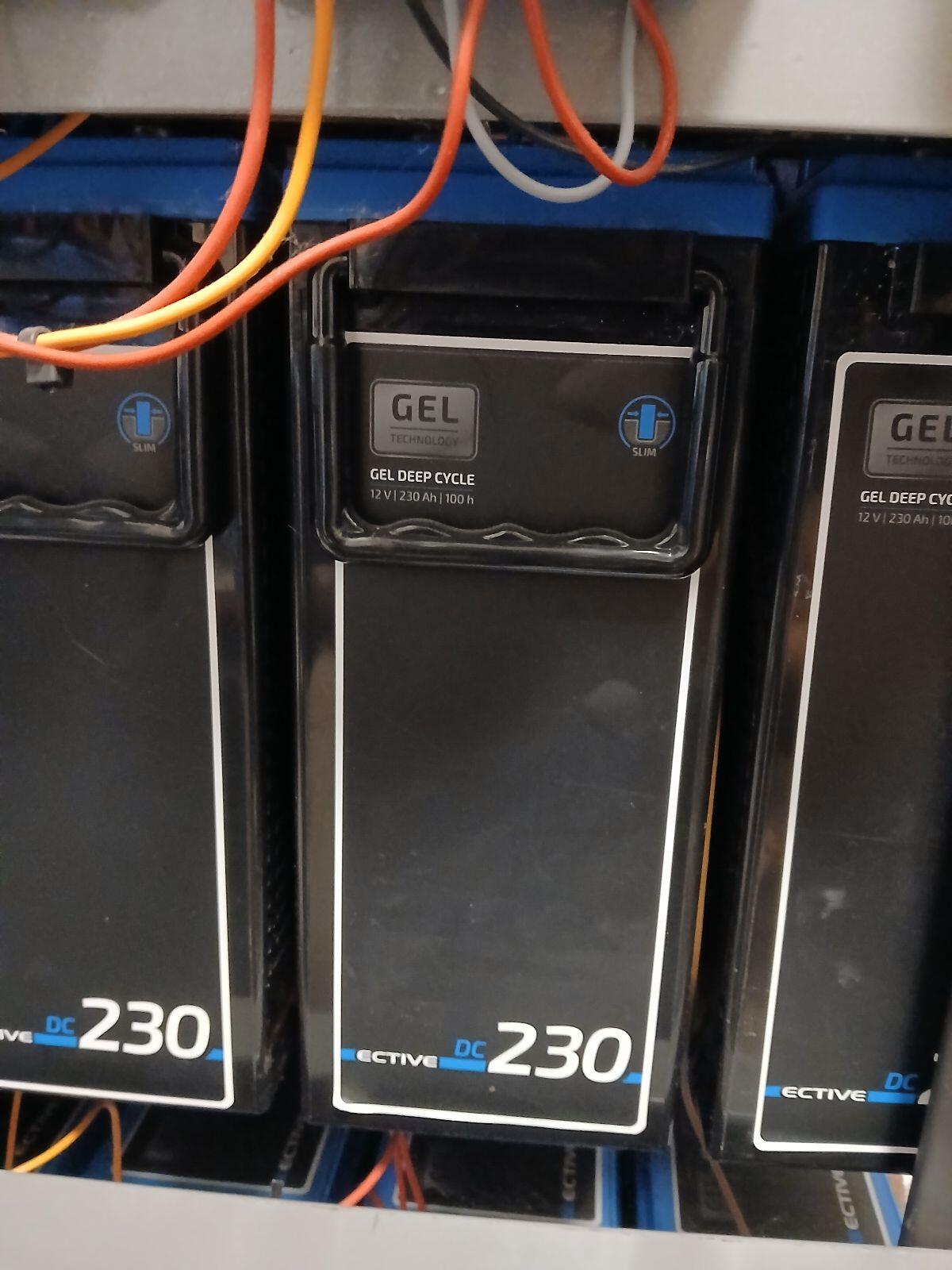 12x Gel Deep Cycle 12 V 230 Ah Batterie. Betreibe den Akku seit 3 Jahren ohne Probleme und war sehr zufrieden, aber wegen Umstellung auf ein anderes System abzugeben
