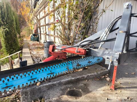 Schneefräse ZAUGG SF 40–110R, Fräsbreite: 110 cm, Fräshaspel-Dm.: 40 cm, Schleuderrad-Dm.: ca. 42 cm, Drehrichtung der Zapfwelle (in Fahrtrichtung): im Uhrzeigersinn