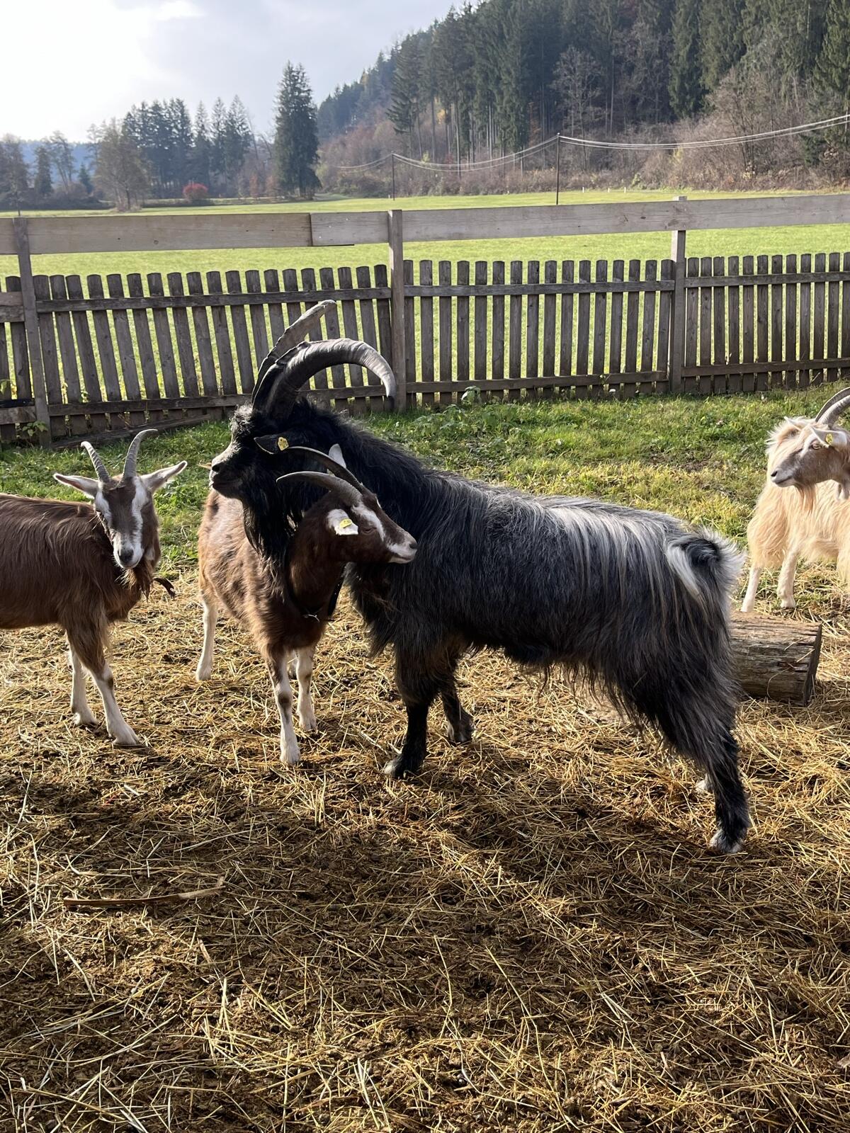 Wir verkaufen unsere 2 männlichen Blobe Ziegen (grau und schwarz), sind Geschwister und kastriert, pro Stk. Sind sehr gut geeignet zum Vernichten von Sträuchern und