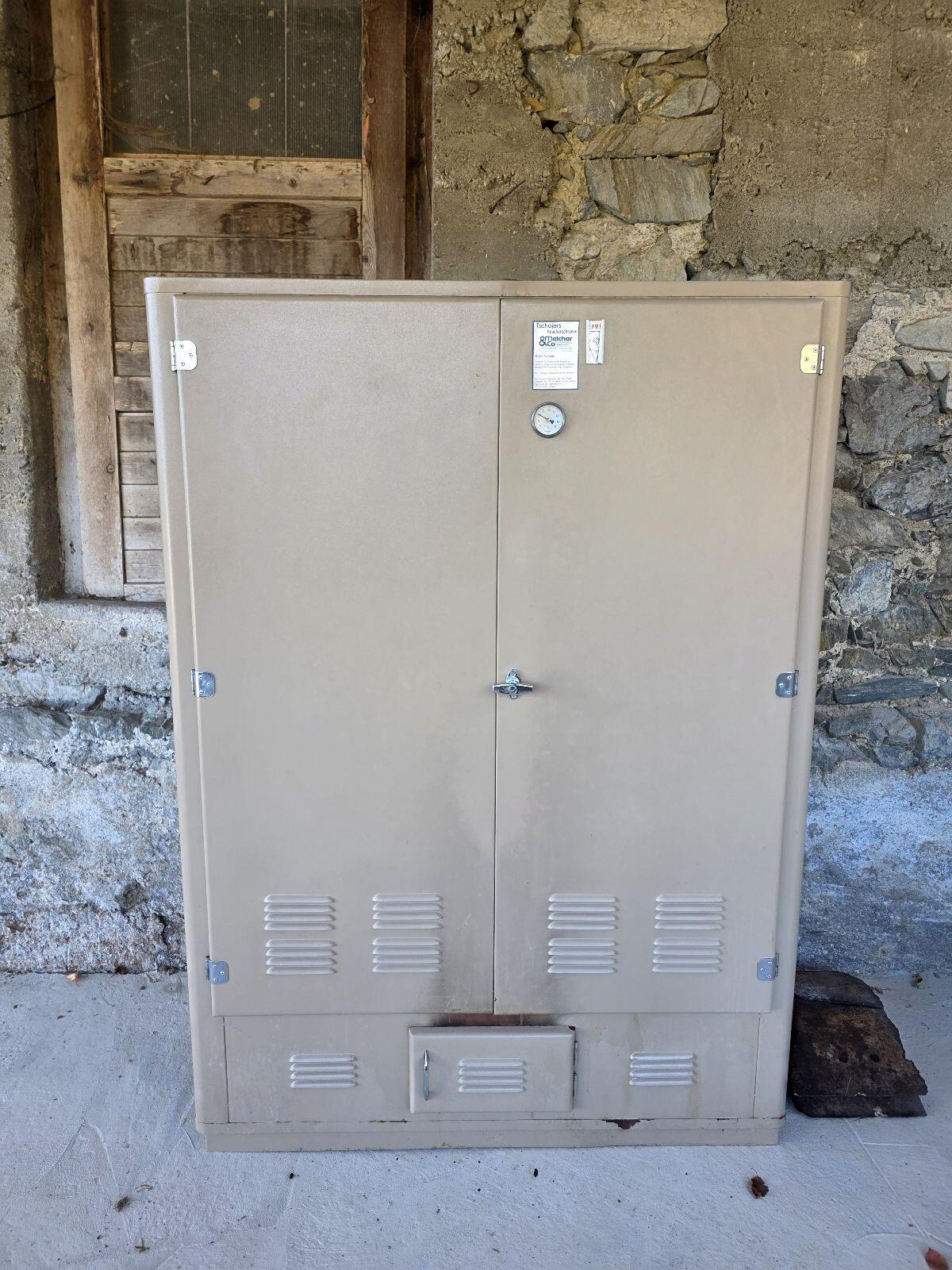 Gut erhaltener originaler Tschojer Melcher Räucherschrank, 180 cm hoch, 127 cm breit. Oprema za direktnu prodaju Oprema za preradu mesa