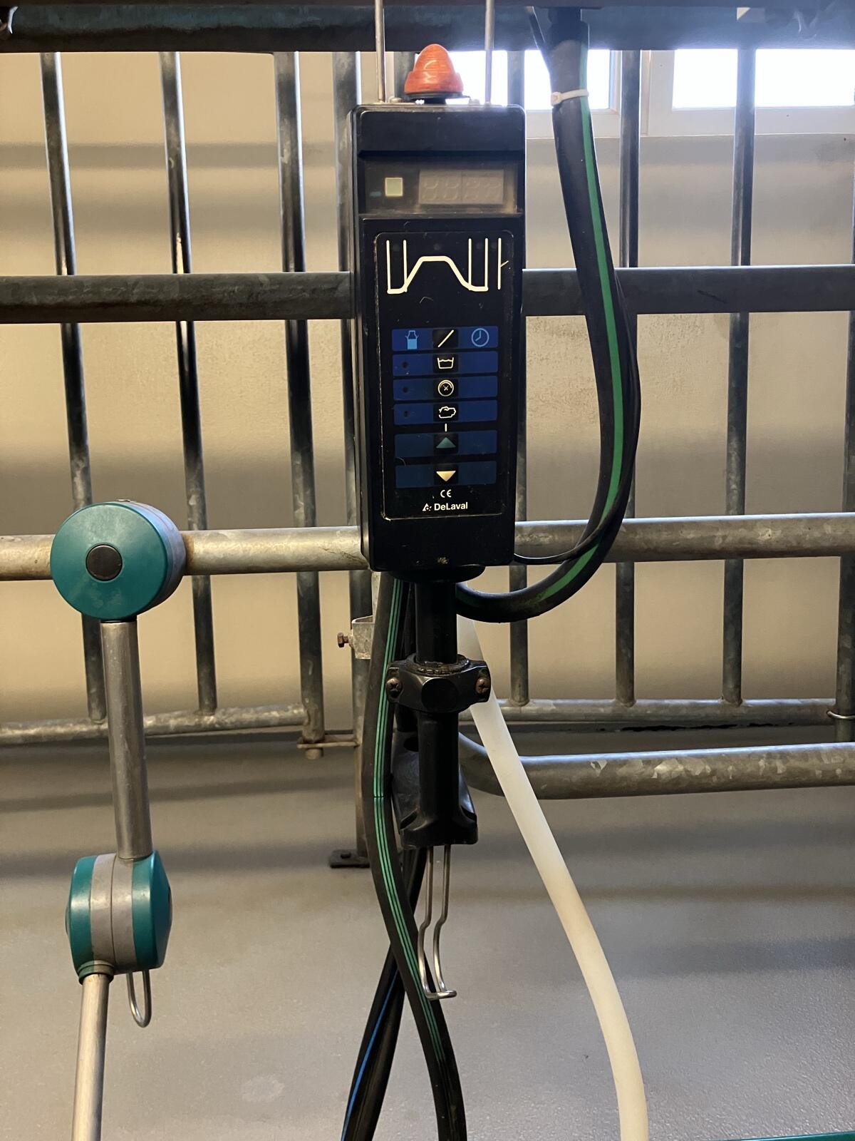 DeLaval 2x4 Fischgräten Melkstand MP 780 mit MPC 680 Melkzeugen mit ICAR Milchmengenmessung MM27 Leitwert- und Bluterkennung, Tiererkennung, Vakuumtore für Ein- und