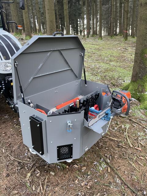 Verkaufe Forstkiste FK-1200 für 3-Punkt- und Weistedreieckanbau am Traktor, Materialstärke 4/5 mm, spielfreie Scharniere, Motorsägenhalterungen li., re., sowie Innen