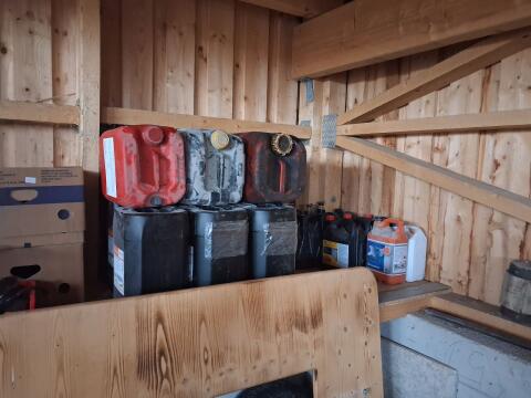 Zum Verkauf steht ein hochwertiger, feuerverzinkter SAFE TANK Container, ausgestattet mit einer integrierten Öl-Auffangwanne, Original steckbarem Regalsystem und ein