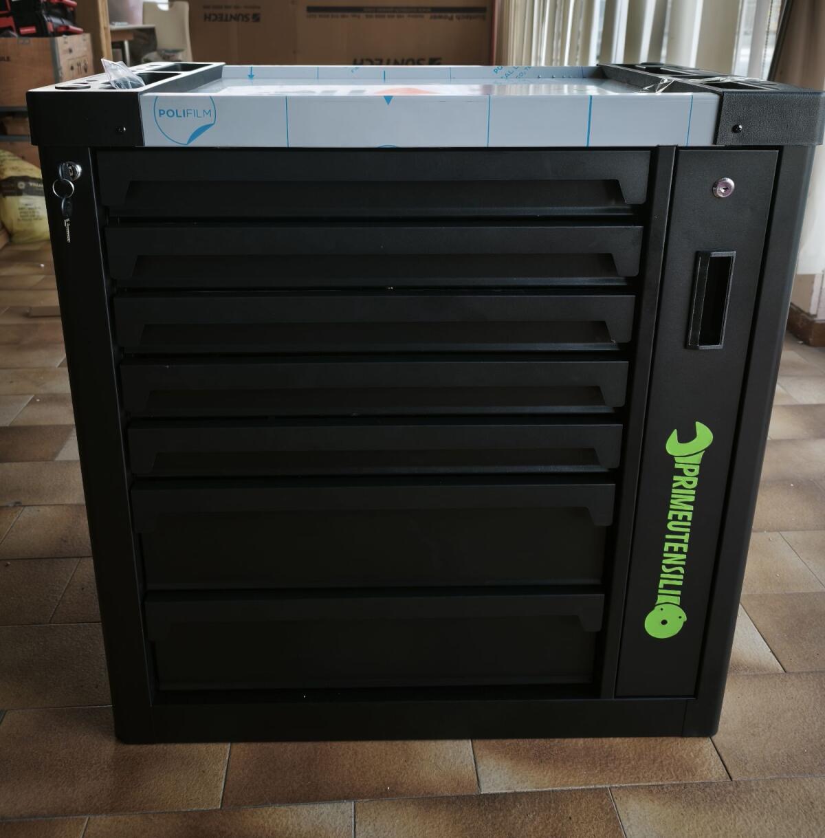 Werkzeugwagen mit 177 Teilen, Stahlrohrrahmen, Lochwand für Wagenzubehör, vollwertige ABS-Arbeitsfläche mit Ablagen, 57 kg, Laden komplett ausziehbar, 4 gefüllte Sch