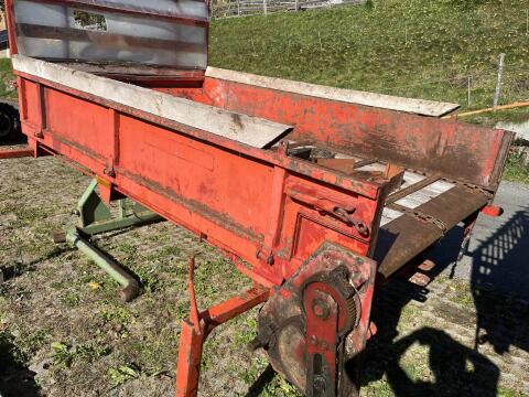 Mengele Miststreuer umgebaut auf Abschiebewagen mit Rückwand, breite Bereifung, hydr. Kratzboden, hydr. Bremse. Ideal zum Brennholz liefern in Carports und Garagen!