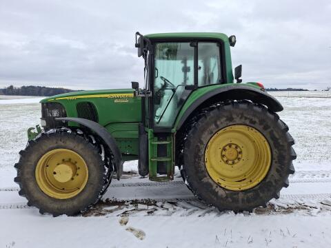John Deere 6920, gut erhalten mit altersgerechten Gebrauchsspuren. Load Sensing, K80 fest, HU neu. Bereifung hinten 650/65R38, ca. 70%, Bereifung vorne 540/65R28, ca