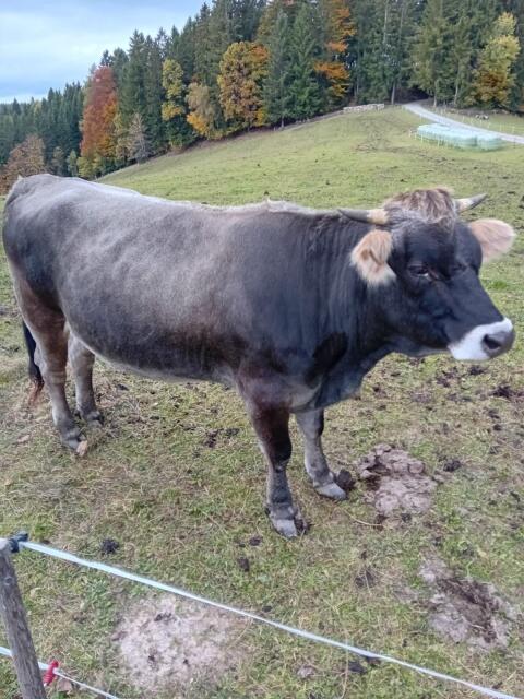 Verkaufe schöne Grauvieh Erstlingskuh für Mutterkuhhaltung, ist momentan trocken, soll kalben am 03.01.2026, belegt mit Genua, Bewertung 8.788. Preis auf Anfrage. Tr