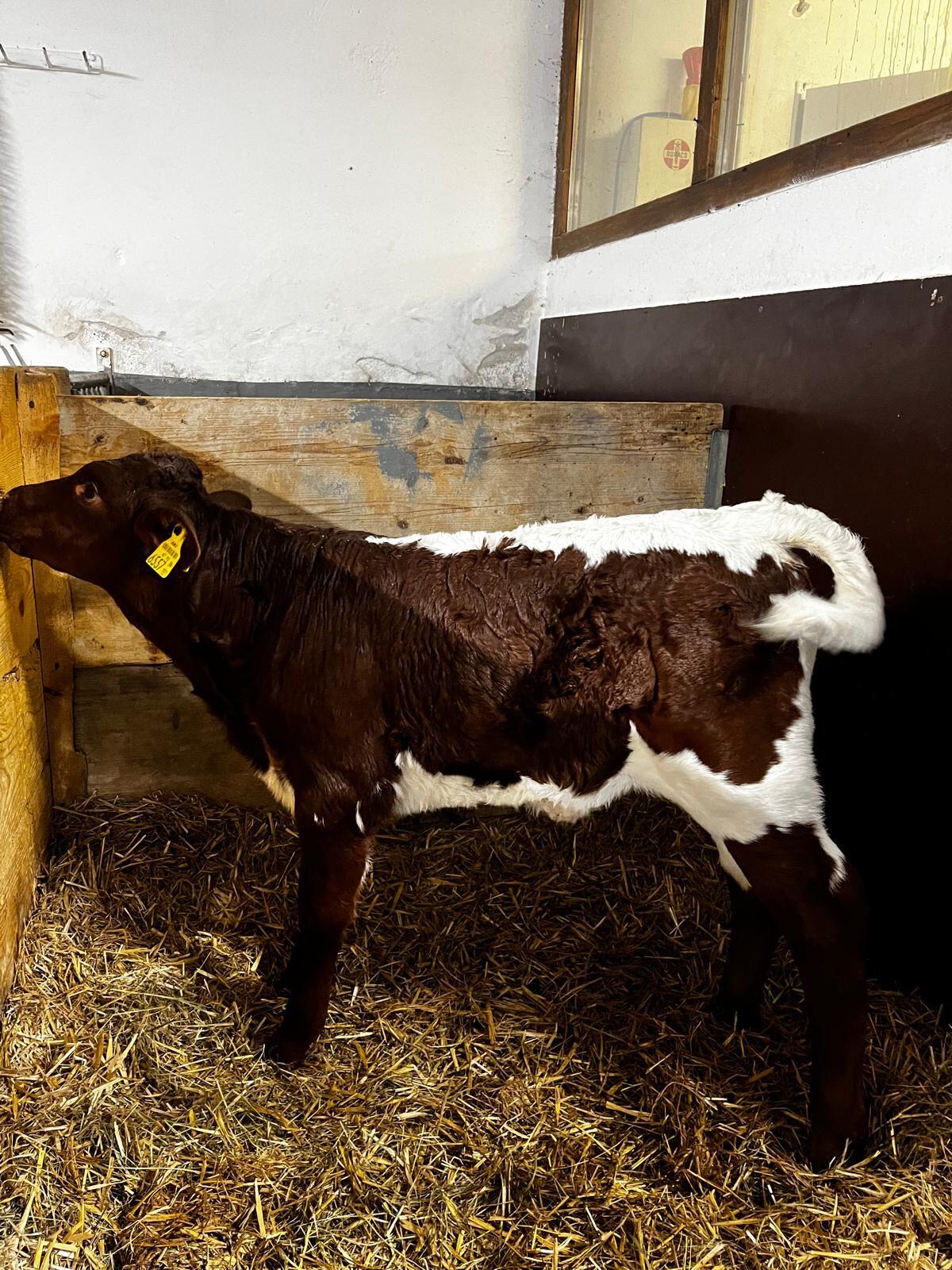 Emmi, geb. Nov. 2021, V. Grimm, s.k.z. 2. Kalb am 25.11., sehr brav, leicht melkbar, melkstandtauglich. Tržište goveda Pinzgauer