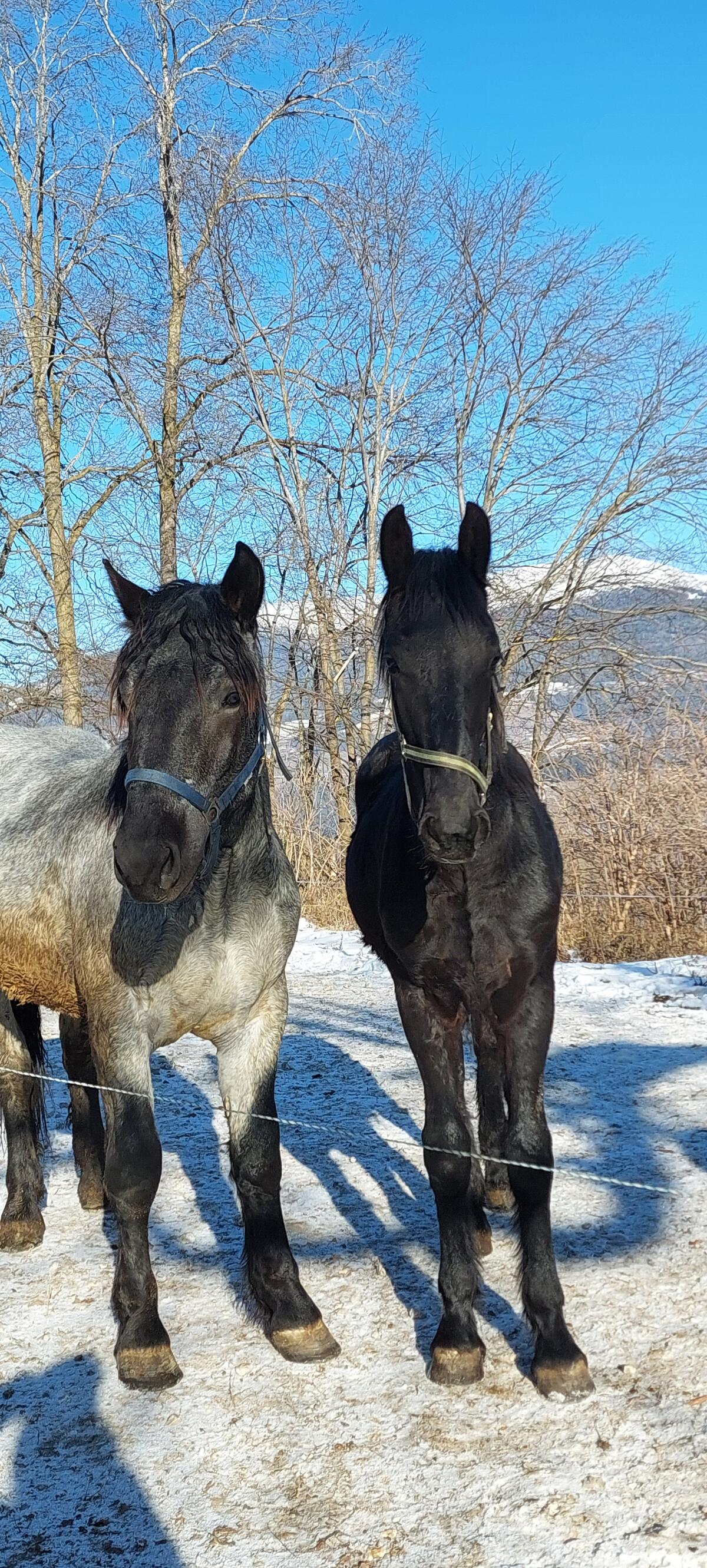 Zum Verkauf steht ein 14-jähriger Percheron Wallach sowie ein 28-jähriger Pony Wallach. Am liebsten wäre es mir, wenn beide zusammen ein Zuhause finden würden. Der P