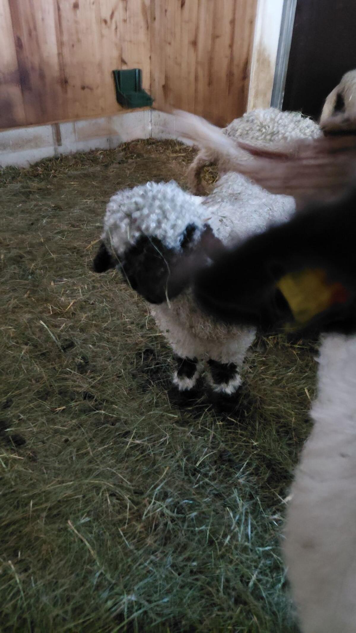 Verkaufe meinen Walliser Schwarznasenwidder, geboren im September 2024, kein HB aufgrund eines kleinen schwarzen Flecks am Vorderbein, beide Eltern HB, kein BIO. Ovc