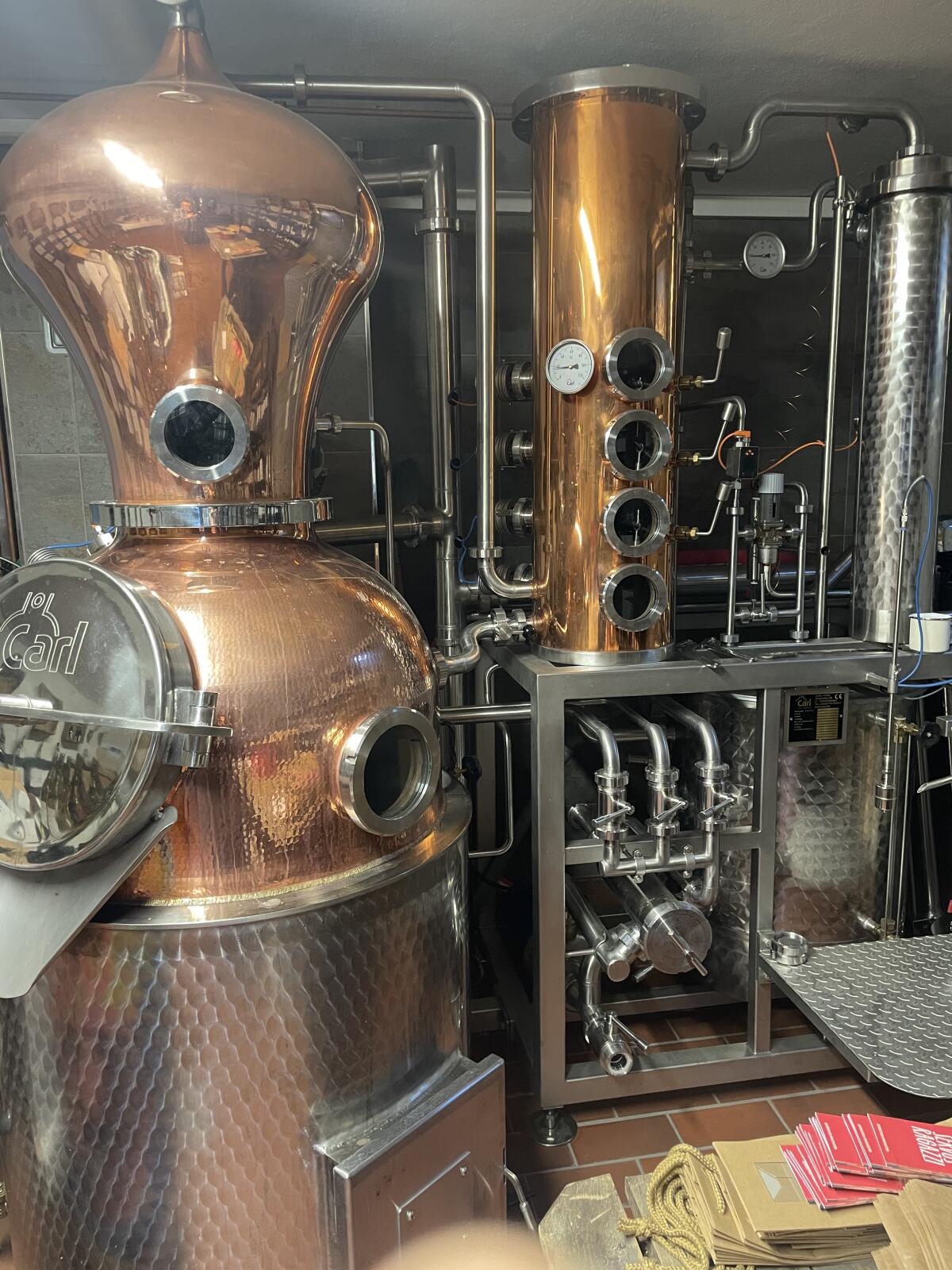 CARL, neuwertige Wasserbad-Brennerei mit Feinbrenner-Kolonne. Daten: Bj. 2021, Blaseninhalt: 149 l, Inh. (Dampf-Wasserraum): 172 l, Holzbeheizung, Temperatursteuerun
