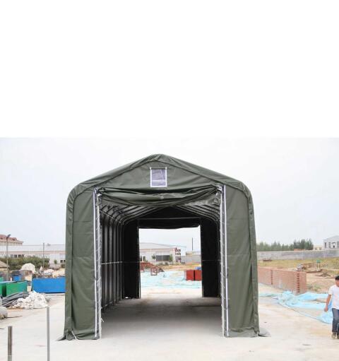 Lagerzelt L 15 m, B 5, 5 m, H 5, 3 m, neu. Lagerzelt/Garage, ausgestattet mit Rohrsystem, verzinkt. Bogenweite: Dm. 76x1, 8 mm, Pfettengröße: Dm. 60x1, 5 mm, Rolltor: 35