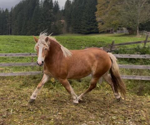 Lupine, Haflinger Stute, ist 6 Jahre alt und besonders eigenwillig. Sie ist lernwillig, nur braucht sie jemanden, der streng zu ihr ist, da sie Menschen sofort durch