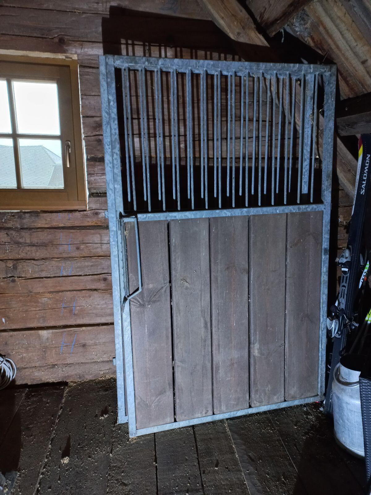 Verkaufe Aufstallung für 8 Kälber, 6 Türen, 2 Fixelemente und 4 Heukörbe, gesamt zu verkaufen oder auch einzeln. Türen und Fixelemente je € 20, -, Heukörbe je € 10, -.