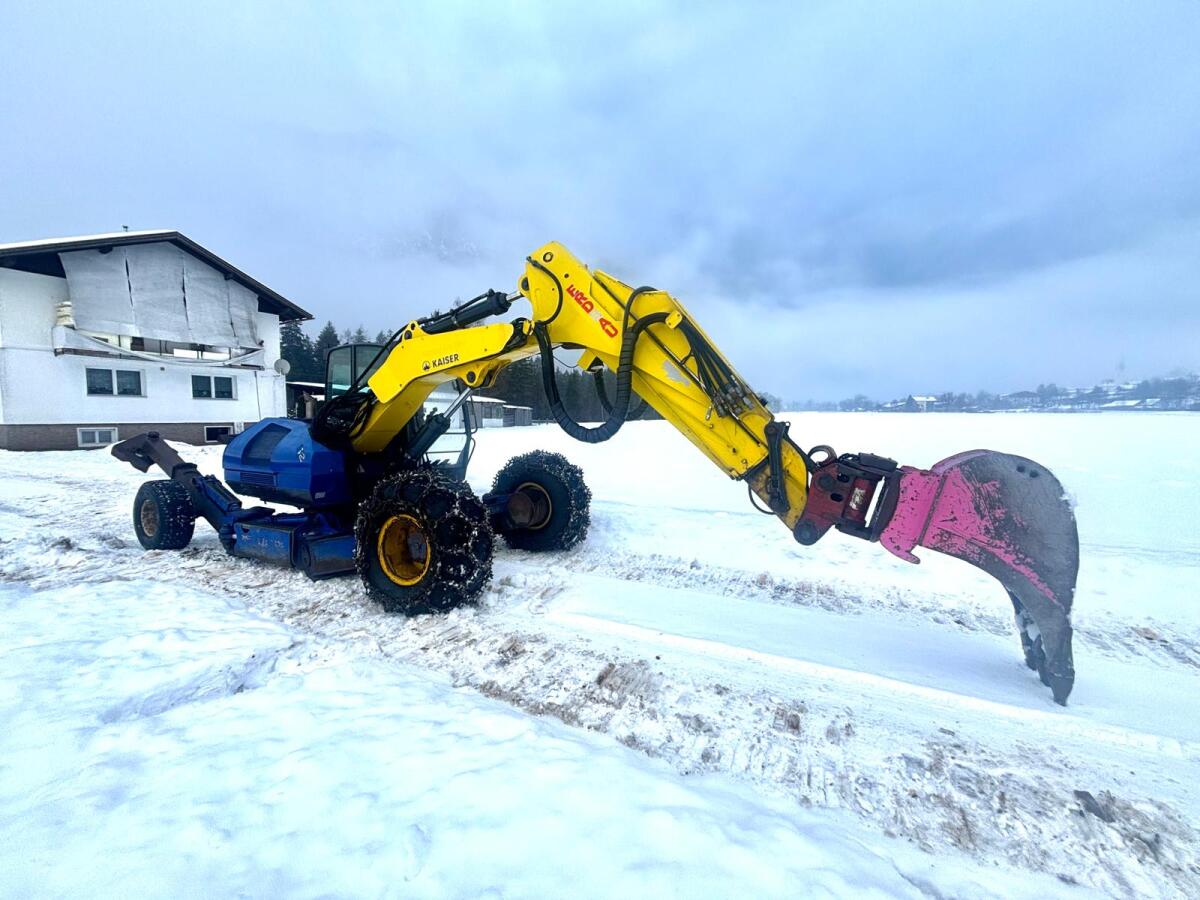 Verkaufe Kaiser S2 Schreitbagger Telefuß, Powertilt von Takeuchi 2150, Original Martin Löffel, Böschungslöffel, 3 originale Kaiser Löffel mit Schnellwechsler, Ringstollenketten neuwertig, LED-Beleuchtung, Rückfahrkamera, Top Zustand außen und innen.