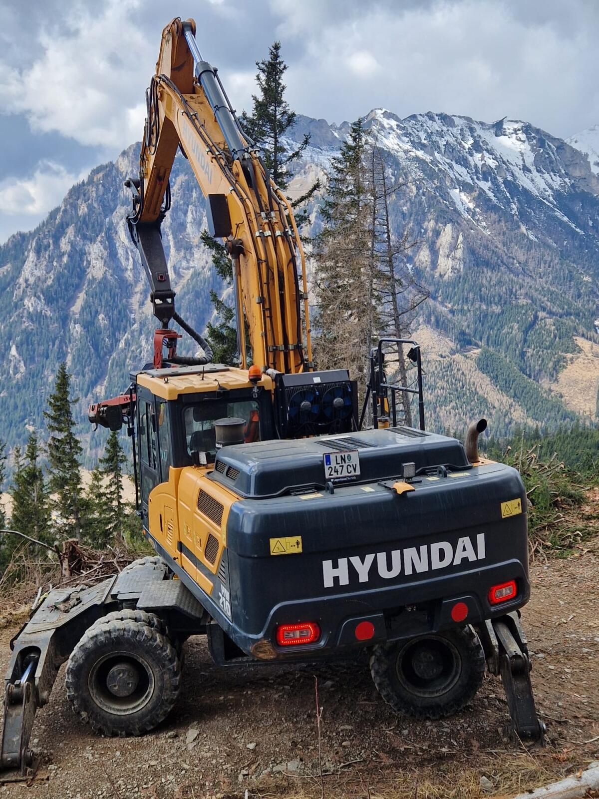 Bagger, Aggregat, beides Bj. 2017. Erstbesitz, der Maschinist ist immer sorgfältig mit der Maschine umgegangen, trotz der gut 12.300 Bstd. ist dieser Baggerprozessor in einem wirklich Topzustand! Dank der großen Greiferöffnung und des Verzichts auf störende Rollen ist das Aggregat Timbernator besonders gut zum Greifen geeignet. Mit dem einzigartigen Vorschubsystem – ein ständiges Wegklappen der Vorschubrollen gibt es nicht. Viel weniger bewegliche Teile bedeuten weniger Verschleißteile! Die Riesenauflagefläche der Baumstämme auf dem innenliegenden Kettenband sorgt für starken Vorschub – bis zu 60 kN. Auch ganz kleines Holz ist kein Problem! Sehr sparsam den Kraftstoffverbrauch betreffend.