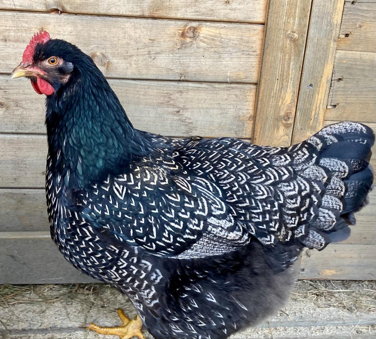Sehr schöner, reinrassiger Barnevelderhahn, 8 Monate alt aus Naturbrut an guten Platz abzugeben. Er ist absolut nicht aggressiv und kümmert sich gut um seine Damen. Die Henne auf dem Bild wird nicht abgegeben, wollte damit nur zeigen, wie schön diese Hühner sind und wie er sich dann vererbt.