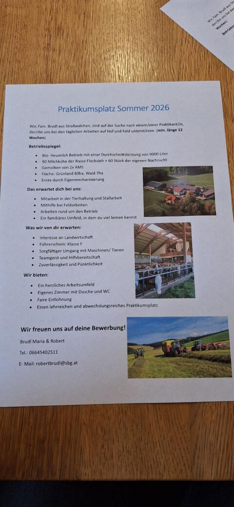 Bioheumilchbetrieb mit Melkroboter, Grünland, Acker, Forst, Wohnung, Verköstigung, Entlohnung, 5221 Lochen am See.