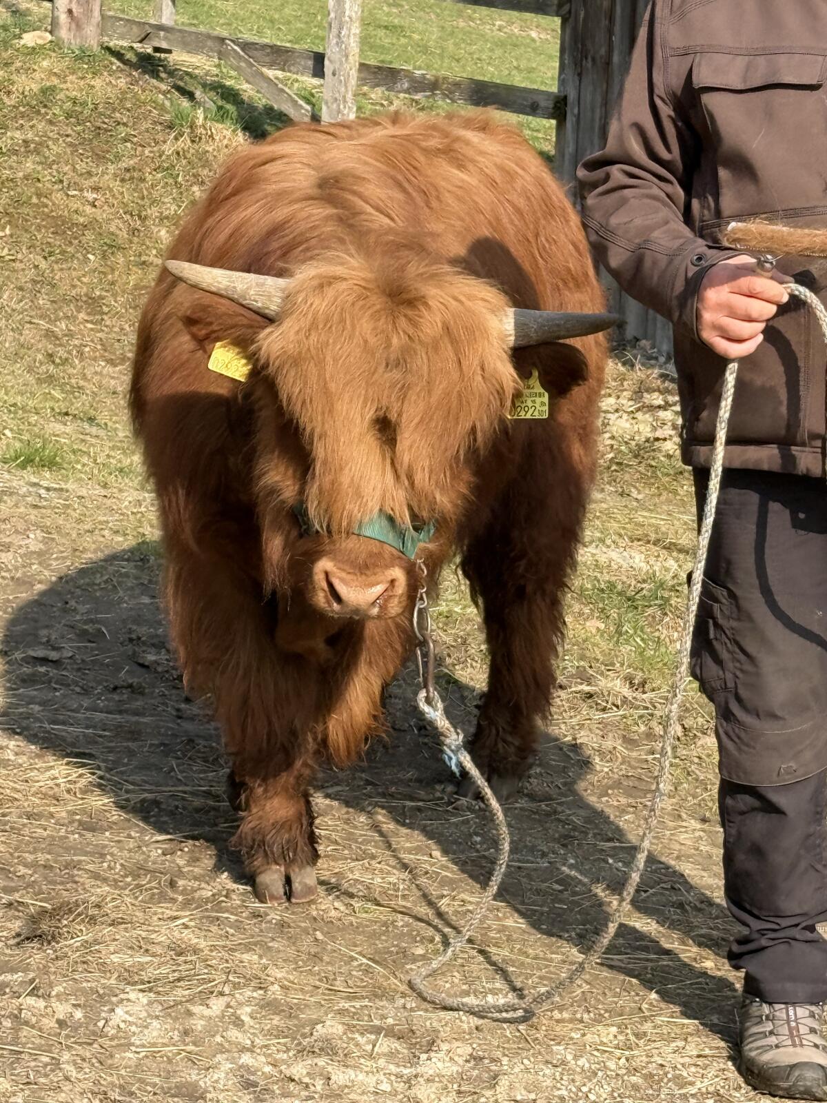 Verkaufe BIO Hochlandrinder Stier. Geboren 22.03.2025. Abstammung rein kanadisch väterlicher seits. Halfterführig und sehr handzahm