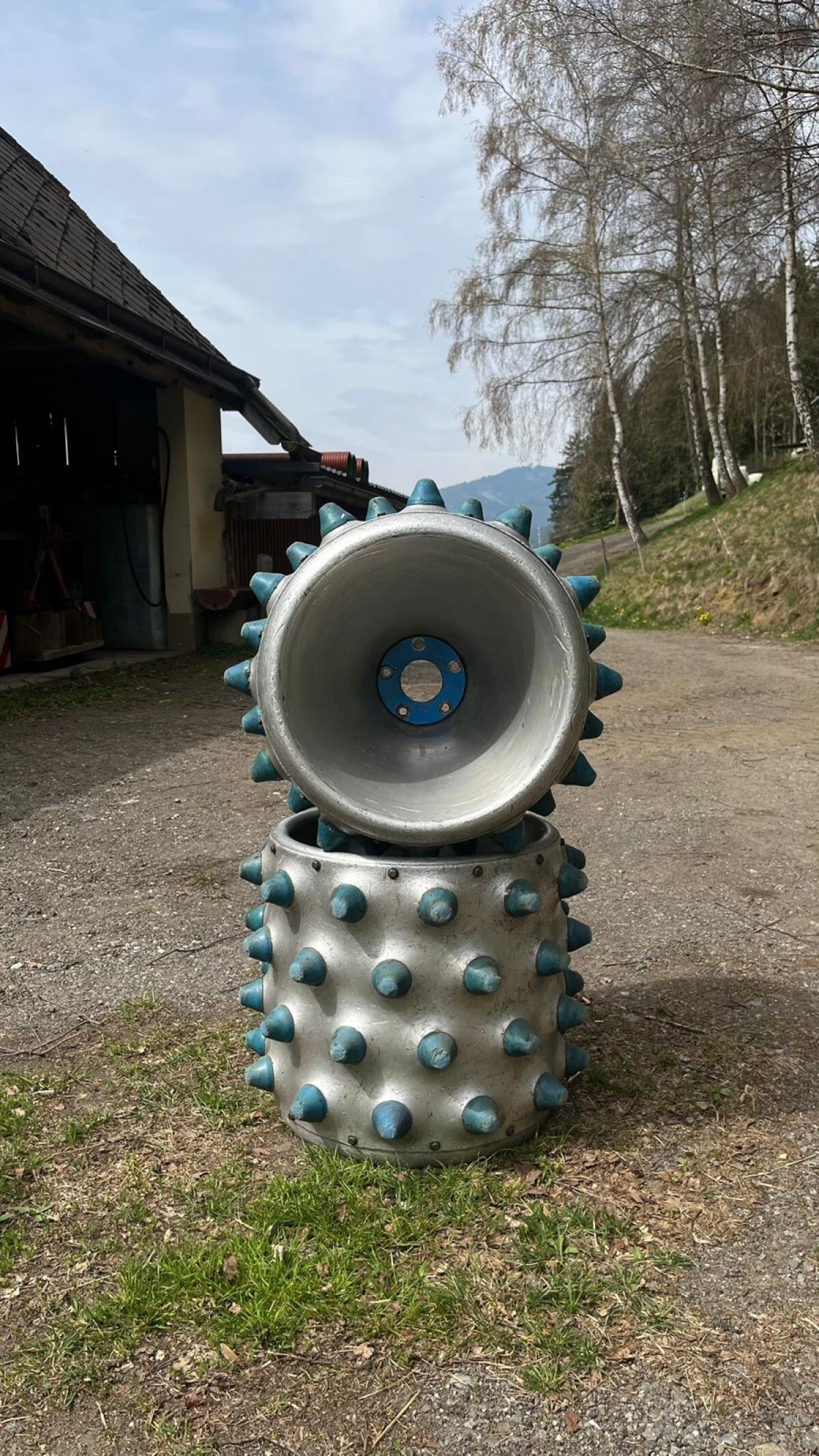 Alu-Stachelwalzen passend für alle Brielmaier-Motormäher. Außendurchmesser 45 cm, Breite 45 cm. Die Stachelräder sind in einem allgemein guten Zustand.